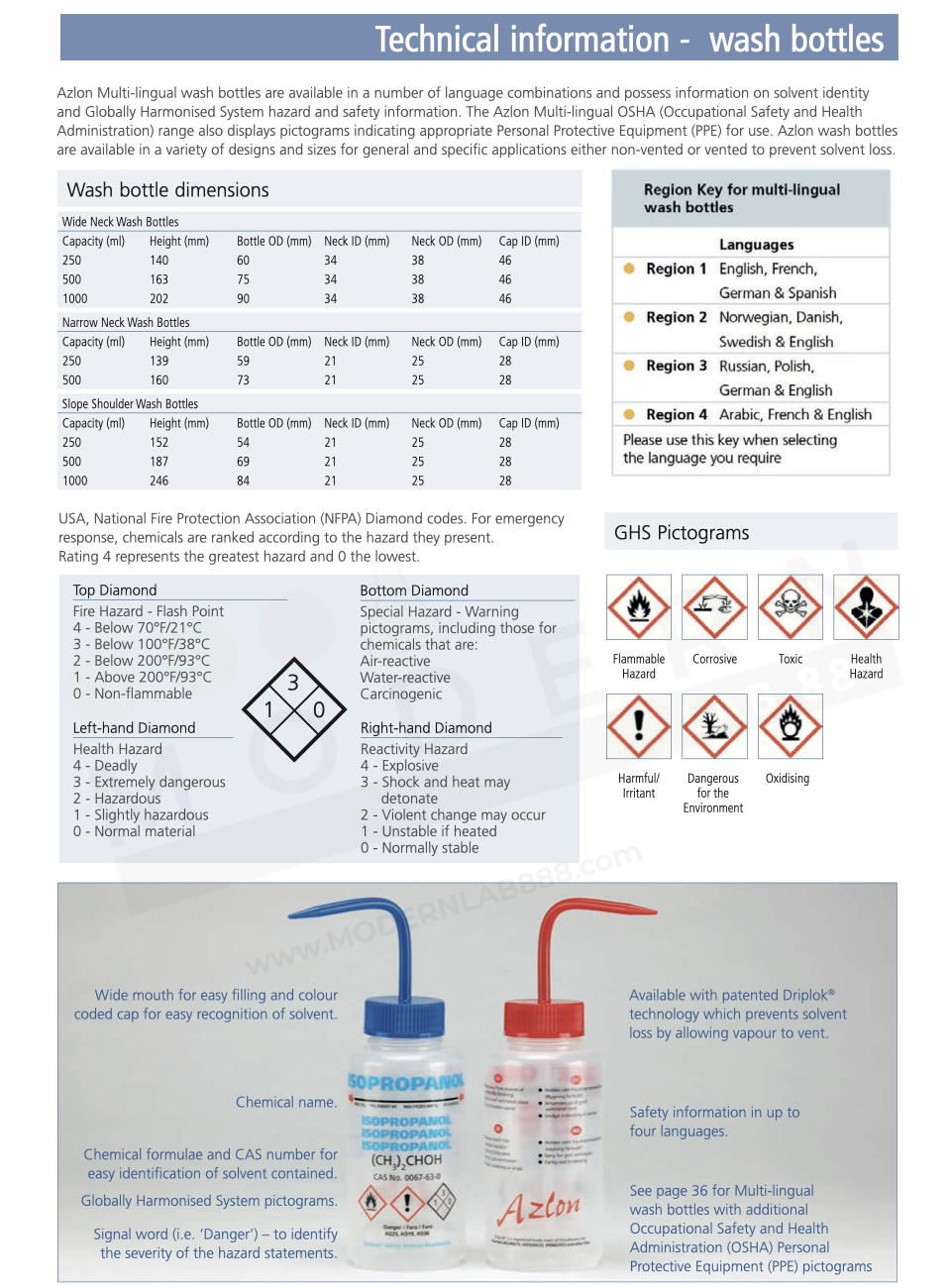 - Pre-printed with common solvents and laboratory solutions with relevant safety information supporting general safety and legislative requirements